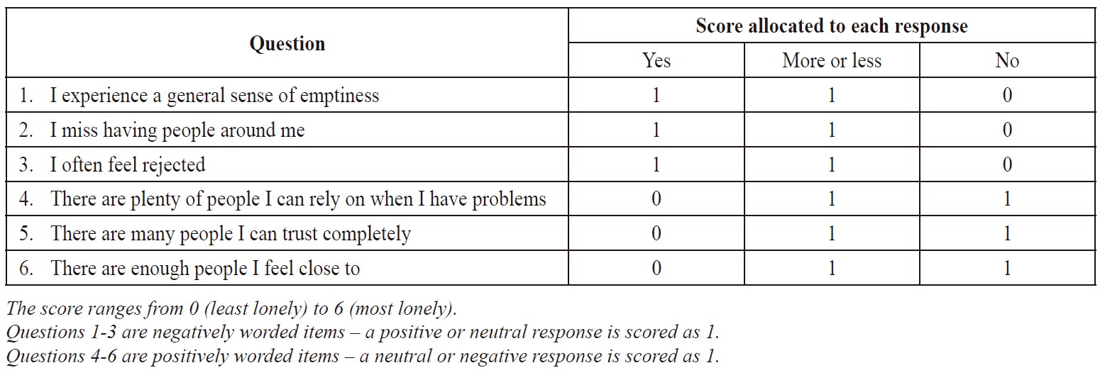 In a busy clinic, the 6-item DeJong Gierveld loneliness