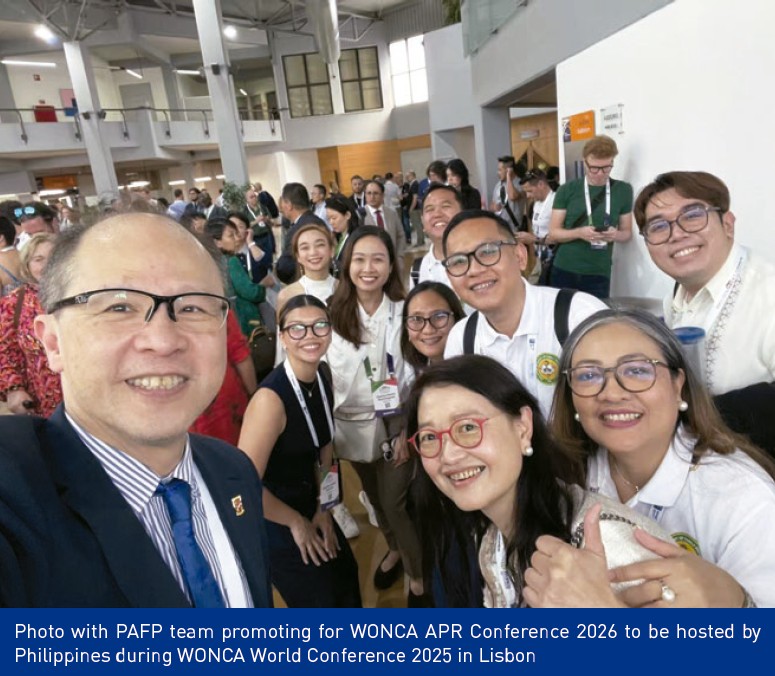 The next WONCA Asia Pacific Regional Conference is to be hosted by the Philippine Academy of Family Physicians at Iloilo, Philippines from 25- 27 March, 2026. The conference theme is entitled, “Family Physicians are Gifted to Give: Hearts that care for Persons, Family, and Community.” Details can be found from their conference Website: www.wonca-apr2026.org.