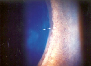 Figure 14: New vessels on the iris in PDR (arrowed)