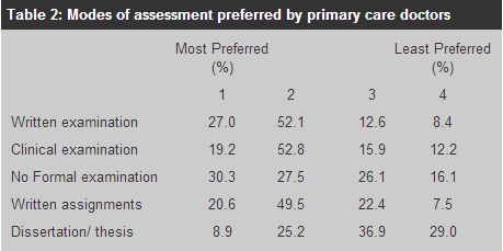The preferred mode of teaching and examination of primary care doctors undertaking