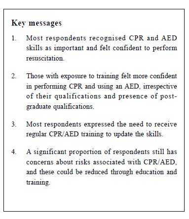 結論: 大多數應答者認識到CPR和AED技能的重要性,並