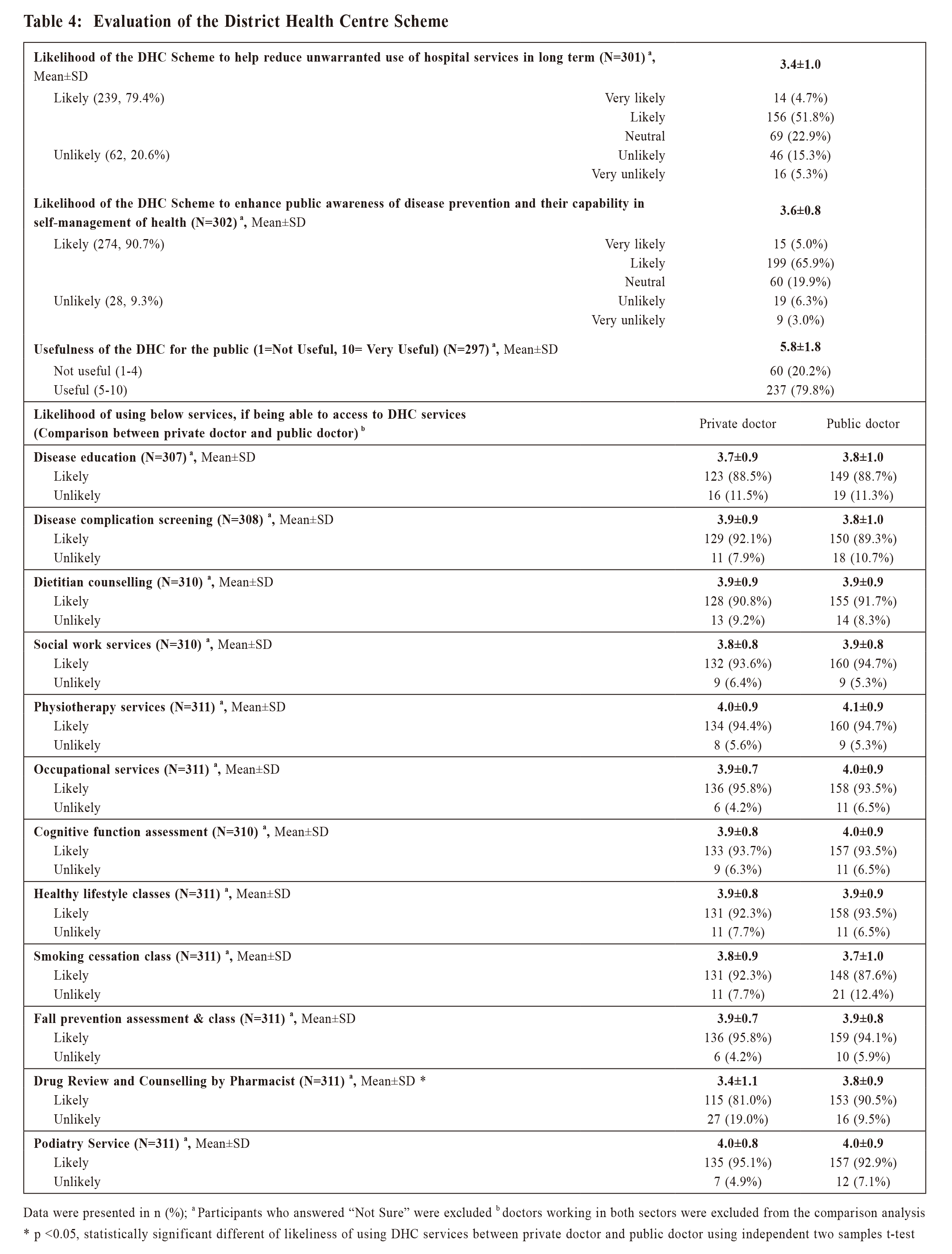 大部分家庭醫生瞭解DHC並認為它對公眾服務有說明。但是DHC需要更多私人家庭醫生參與,以擴大網絡醫生的覆蓋範圍。