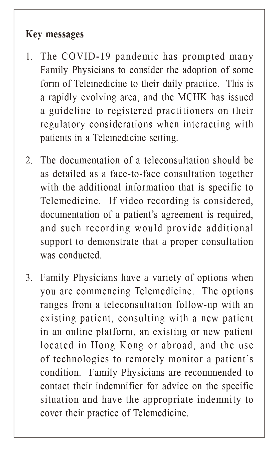 許多國家因受到持續全球性COVID-19大流行影響,需要暫停包括社區醫療等各種服務。在這些地區,遙距醫療不僅是另類選擇,而是與病人診症的唯一途徑。相比其他地區,香港具備優良的交通網絡,病人可以輕易地前往私人或公營診所求診。幸好,香港未因疫情而需要全面或大規模封城。多數醫生仍然繼續應診。冀望這種情況不會受到近日確診人數上升而改變。即使如此,遙距醫療(或對它的興趣)可能會由於不同因素而漸趨普及。對誇境人士而言 ,尤其是當交通往來受到限制時,遙距診症變得至為重要。遙距診症亦有助減低交叉感染風險。很多執業醫生害怕其病人或同事一旦被確診或界定為“緊密接觸者”時,他們的醫務所會被強制停診。亦有病人擔心受到感染而不願親身前往診所求診。無論如何,我們至少已意識到為病人提供遙距醫療服務的可能性。醫生可以使用自己的平台或在其他公共平台操作。或較為欠理想的,可為一些商營中介公司所提供的病人服務。本文簡列一些家庭醫生在開拓遙距醫療服務時需要考慮的問題。