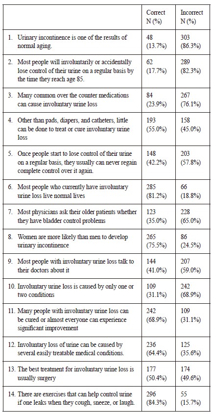 highest incorrect item was “Urinary incontinence is one of the results of normal aging” (incorrect rate