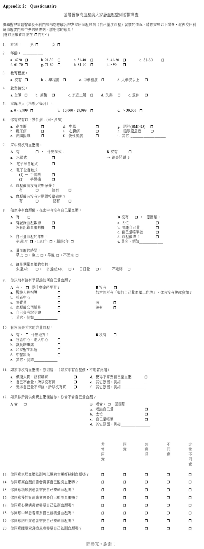 結論:香港某間基層醫療診所的華藉高血壓病人中,58.5%進行家居血壓監測。55.3%病人通過了自我血壓測量的評核試。