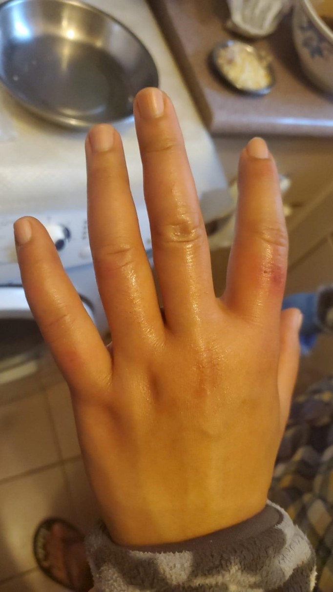 A 45-year-old Indonesian domestic helper presented with onset within a few days of itchy swollen fingers on both hands