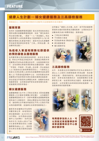 12FEATURE%u670d%u52d9%u80cc%u666f%u653f%u5e9c%u7684%u300a%u57fa%u5c64%u91ab%u7642%u5065%u5eb7%u85cd%u5716%u300b%u63d0%u51fa%u6539%u9769%u63aa%u65bd%u52a0%u5f37%u4ee5%u9810%u9632%u70ba%u91cd%u7684%u57fa%u5c64%u91ab%u7642%u5065%u5eb7%u670d%u52d9%uff0c%u5305%u62ec%u300c%u6162%u6027%u75be%u75c5%u5171%u540c%u6cbb%u7406%u5148%u5c0e%u8a08%u5283%u300d%uff0c%u900f%u904e%u300c%u4e00%u4eba%u4e00%u5bb6%u5ead%u91ab%u751f%u300d%u548c%u7531%u5730%u5340%u5eb7%u5065%u4e2d%u5fc3%u6216%u5730%u5340%u5eb7%u5065%u7ad9(%u5730%u5340%u5eb7%u5065%u4e2d%u5fc3/%u7ad9)%u7d71%u7c4c%u7684%u8de8%u5c08%u696d%u516c%u79c1%u71df%u5354%u4f5c%u6a21%u5f0f%uff0c%u8cc7%u52a9%u5e02%u6c11%u5728%u79c1%u71df%u91ab%u7642%u754c%u5225%u63a5%u53d7%u9810%u9632%u7be9%u67e5%u548c%u7ba1%u7406%u300c%u4e09%u9ad8%u300d(%u5373%u9ad8%u8840%u58d3%u3001%u9ad8%u8840%u7cd6%u548c%u9ad8%u8840%u8102)%u3002%u70ba%u4f4e%u6536%u5165%u5bb6%u5ead%u548c%u5f31%u52e2%u793e%u7fa4%u63d0%u4f9b%u7684%u9810%u9632%u7be9%u67e5%u53ca%u8b77%u7406%u670d%u52d9%u70ba%u7167%u9867%u5f31%u52e2%u793e%u7fa4%u7684%u5065%u5eb7%u670d%u52d9%u9700%u8981%uff0c%u653f%u5e9c%u5728%u5168%u6e2f%u5404%u5340, %u4f8b%u5982%u4ee5%u4e2d%u897f%u5340%u53ca%u5357%u5340%u70ba%u4f8b%uff0c%u897f%u71df%u76e4%u53ca%u9d28%u8137%u6d32%u5bb6%u5ead%u91ab%u5b78%u8a3a%u6240%u6210%u70ba%u653f%u5e9c%u9078%u5b9a%u7684%u8a3a%u6240%uff0c%u4ee5%u65b0%u670d%u52d9%u6a21%u5f0f%u8a66%u884c%uff0c%u4e26%u70ba%u5f31%u52e2%u793e%u7fa4%u63d0%u4f9b%u9810%u9632%u7be9%u67e5%u53ca%u8b77%u7406%u670d%u52d9%uff0c%u9054%u81f4%u300c%u65e9%u9810%u9632%u3001%u65e9%u767c%u73fe%u3001%u65e9%u6cbb%u7642%u300d%u7684%u76ee%u6a19%u3002%u7b26%u5408%u8cc7%u683c%u7684%u4eba%u58eb(%u5305%u62ec%u7d9c%u5408%u793e%u6703%u4fdd%u969c%u63f4%u52a9%u53d7%u52a9%u4eba%u300175%u6b72%u6216%u4ee5%u4e0a%u9577%u8005%u751f%u6d3b%u6d25%u8cbc%u53d7%u60e0%u4eba%u6216%u6301%u6709%u6709%u6548%u91ab%u7642%u8cbb%u7528%u6e1b%u514d%u8b49%u660e%u66f8%u4eba%u58eb)%u53ef%u900f%u904e%u5730%u5340%u5eb7%u5065%u4e2d%u5fc3%u7ad9%uff0c%u5b89%u6392%u5230%u9078%u5b9a%u7684%u5bb6%u5ead%u91ab%u5b78%u8a3a%u6240%u63a5%u53d7%u9810%u9632%u6027%u5a66%u5973%u4fdd%u5065%u53ca%u5065%u5eb7%u4fc3%u9032%u670d%u52d9%uff0c%u65e8%u5728%u4fc3%u9032%u53ca%u65e9%u767c%u73fe%u548c%u6cbb%u7642%u6162%u6027%u75be%u75c5%uff0c%u9f13%u52f5%u53c3%u52a0%u8005%u81ea%u6211%u5065%u5eb7%u7ba1%u7406%uff0c%u5f9e%u800c%u5e6b%u52a9%u4ed6%u5011%u66f4%u6709%u6548%u7ba1%u7406%u6162%u6027%u75be%u75c5%uff0c%u4fc3%u9032%u5065%u5eb7%u53ca%u9810%u9632%u4f75%u767c%u75c7%u3002%u5a66%u5973%u5065%u5eb7%u670d%u52d9%u57fa%u5c64%u91ab%u7642%u7f72%u5df2%u5728%u4eca%u5e74%u4e8c%u6708%u5236%u5b9a%u4e26%u63a8%u51fa%u300a%u9999%u6e2f%u57fa%u5c64%u91ab%u7642%u5065%u5eb7%u4eba%u751f%u8a08%u5283%u53c3%u8003%u6982%u89bd%u4e4b%u5a66%u5973%u7bc7%u300b%uff0c%u4ee5%u6301%u7e8c%u63d0%u5347%u57fa%u5c64%u91ab%u7642%u670d%u52d9%u7684%u6c34%u5e73%u3002%u8a72%u53c3%u8003%u6982%u89bd%u70ba%u57fa%u5c64%u91ab%u7642%u670d%u52d9%u63d0%u4f9b%u8005%u8a02%u7acb%u6e05%u6670%u6307%u5f15%uff0c%u63d0%u5021%u4ee5%u5be6%u8b49%u70ba%u672c%u7684%u9810%u9632%u6027%u8b77%u7406%uff0c%u5354%u52a9%u5a66%u5973%u53ca%u65e9%u8b58%u5225%u548c%u8655%u7406%u5728%u4e0d%u540c%u4eba%u751f%u968e%u6bb5%u53ef%u80fd%u51fa%u73fe%u7684%u5065%u5eb7%u554f%u984c%uff0c%u4fc3%u9032%u5a66%u5973%u81ea%u6211%u7ba1%u7406%u5065%u5eb7%u80fd%u529b%u3002%u91ab%u7ba1%u5c40%u5bb6%u5ead%u91ab%u5b78%u8a3a%u6240%u70ba%u805a%u7126%u7167%u9867%u5f31%u52e2%u793e%u7fa4%uff0c%u65b0%u589e%u9810%u9632%u6027%u5a66%u5973%u5065%u5eb7%u670d%u52d9%u3002%u75312025%u5e743%u670828%u65e5%u958b%u59cb%uff0c%u8a3a%u6240%u900f%u904e%u5730%u5340%u5eb7%u5065%u4e2d%u5fc3/%u7ad9%u7684%u8f49%u4ecb%uff0c%u70ba%u7b26%u5408%u8cc7%u683c%u7684%u5973%u6027(%u5305%u62ec64%u6b72%u4ee5%u4e0b%u7d9c%u5408%u793e%u6703%u4fdd%u969c%u63f4%u52a9%u53d7%u52a9%u4eba%u6216%u7372%u91ab%u7642%u8cbb%u7528%u6e1b%u514d%u4eba%u58eb)%uff0c%u63d0%u4f9b%u9810%u9632%u6027%u5a66%u5973%u4fdd%u5065%u53ca%u5065%u5eb7%u4fc3%u9032%u670d%u52d9%u3002%u8a3a%u6240%u6703%u4ee5%u300c%u5065%u5eb7%u4eba%u751f%u8a08%u5283%u300d%u70ba%u672c%uff0c%u6309%u4e0d%u540c%u7684%u5065%u5eb7%u9700%u8981%u63d0%u4f9b%u5408%u9069%u7684%u9810%u9632%u7be9%u67e5%u53ca%u8b77%u7406%u670d%u52d9%uff0c%u4ee5%u9810%u9632%u6216%u53ca%u65e9%u8a3a%u65b7%u75be%u75c5%u53ca%u6e1b%u5c11%u76f8%u95dc%u4f75%u767c%u75c7%uff0c%u670d%u52d9%u5305%u62ec:%u25cf%u4e09%u9ad8%u8840%u6db2%u5316%u9a57%u6aa2%u67e5%u25cf%u5b50%u5bae%u9838%u62b9%u7247%u6aa2%u67e5%u25cf%u4e73%u623f%u9020%u5f71%u6aa2%u67e5(%u9700%u7d93%u8a55%u4f30)%u25cf%u5a66%u5973%u5065%u5eb7%u6559%u80b2%u25cf%u91ab%u751f%u5065%u5eb7%u8a55%u4f30%u5065%u5eb7%u4eba%u751f%u8a08%u5283%u2014%u5a66%u5973%u5065%u5eb7%u670d%u52d9%u53ca%u4e09%u9ad8%u7be9%u6aa2%u670d%u52d9%u9673%u4f69%u7469%u5973%u58eb(%u6e2f%u5cf6%u897f%u91ab%u9662%u806f%u7db2%u5bb6%u5ead%u91ab%u5b78%u53ca%u57fa%u5c64%u91ab%u7642%u90e8%u8cc7%u6df1%u8b77%u5e2b)%u201cSubmissions of articles to Feature / Family Doctors Column / Young Doctors Column with up to 1200 words are always welcome. Options of College Souvenirs or Gift vouchers will be given as a token of appreciation if the articles are selected for publication. Email: FPLinks@hkcfp.org.hk%u201d%u4e09%u9ad8%u7be9%u6aa2%u670d%u52d9%u6b64%u5916%uff0c%u5404%u5340%u9078%u5b9a%u7684%u5bb6%u5ead%u91ab%u5b78%u8a3a%u6240%u4ea6%u70ba%u5408%u8cc7%u683c%u768445%u6b72%u4ee5%u4e0a%u4eba%u58eb%u63d0%u4f9b%u4e09%u9ad8%u7be9%u6aa2%u670d%u52d9(%u5373%u9ad8%u8840%u58d3%u3001%u9ad8%u8840%u7cd6%u548c%u9ad8%u8840%u8102)%uff0c%u900f%u904e%u8a73%u7d30%u8a55%u4f30%uff0c%u63d0%u4f9b%u62bd%u8840%u670d%u52d9%u53ca%u8840%u58d3%u76e3%u6e2c%uff0c%u6309%u53c3%u52a0%u8005%u7684%u5065%u5eb7%u72c0%u6cc1%uff0c%u5c31%u670d%u52d9%u7bc4%u7587%u8a02%u5b9a%u5065%u5eb7%u7ba1%u7406%u65b9%u6848%uff0c%u5305%u62ec%u9810%u9632%u7be9%u67e5%u53ca%u8b77%u7406%u3001%u5065%u5eb7%u6559%u80b2%u548c%u8aee%u8a62%u7b49%uff0c%u4ee5%u63a7%u5236%u6162%u6027%u75be%u75c5%u98a8%u96aa%u56e0%u7d20%u4fc3%u9032%u5065%u5eb7%uff0c%u52a0%u5f37%u670d%u52d9%u5c0d%u8c61%u7684%u5065%u5eb7%u610f%u8b58%u300